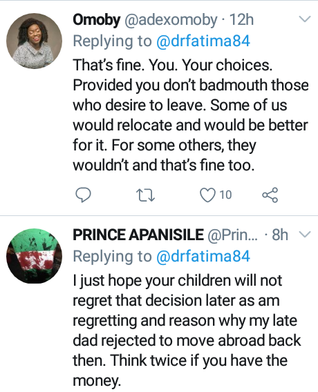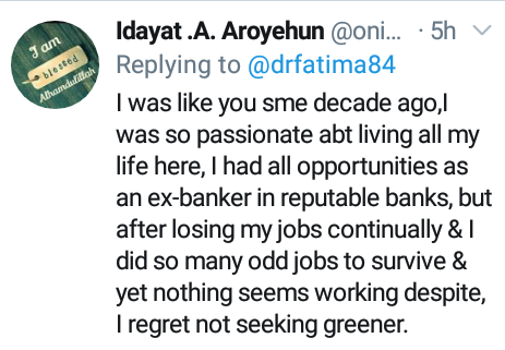 According to Fatima, a lot of her colleagues have left but she is determined to stay and make Nigeria work, “about a month ago,