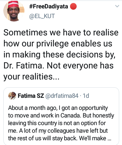 I got an opportunity to move and work in Canada. But honestly leaving this country is not an option for me. A lot of my colleagues have left but the rest of us will stay back. We’ll make our country work. We were born here, we’ll live here, we die here.” she wrote.